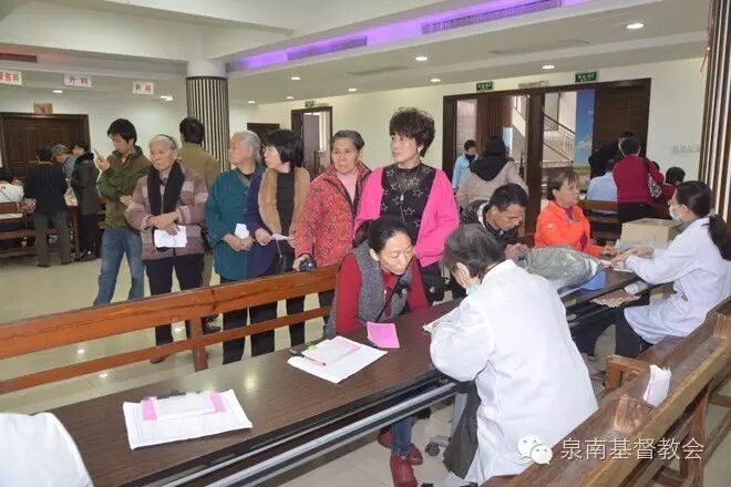 迎圣诞,感主恩,泉州市基督教义诊队一年一度的感恩义诊活动于12月3日在泉南堂举行。本着基督博爱精神,义诊活动面向社会大众开放,不分信仰、无论身份,所有检查、诊疗、药品,一概免费。