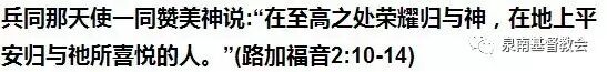 “不要惧怕!我报给你们大喜的信息,是关乎万民的;因今天在大卫的城里,为你们生了救主,就是主基督。你们要看见一个婴孩,包着布,卧在马槽里,那就是记号了。”忽然有一大队天